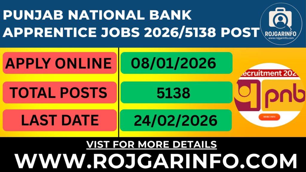 Job Location/Punjab National Bank Apprentice Jobs 2026/5138 Post