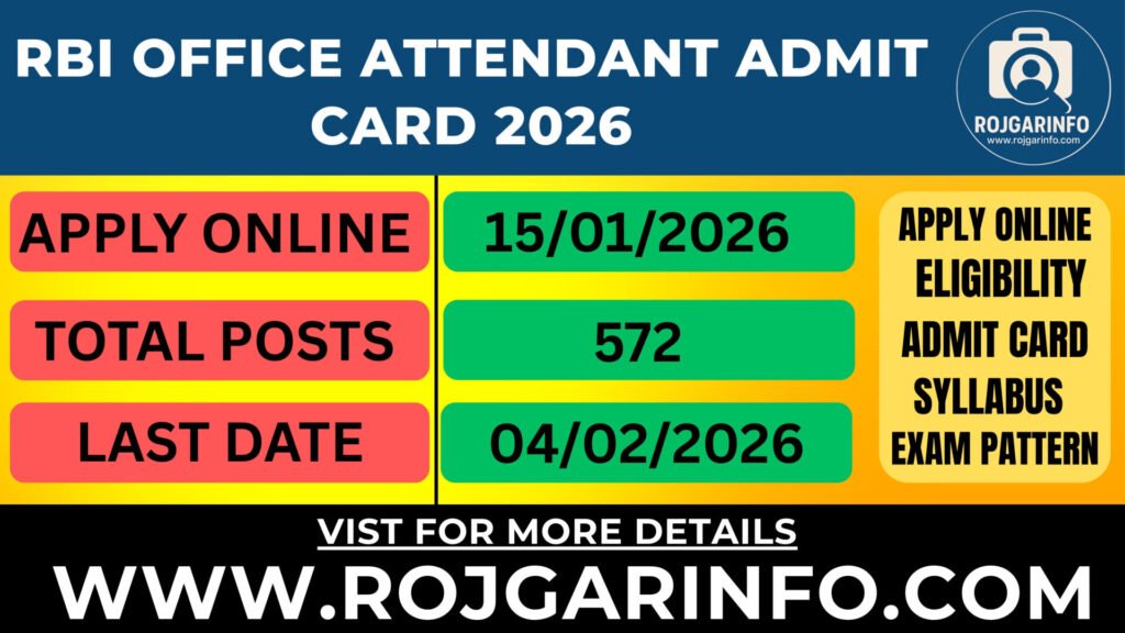 | ⁕ Recruitment Name: RBI Office Attendant Admit Card 2026 ⁕ Conducting Body: Reserve Bank of India ⁕ Total Post: 572 |